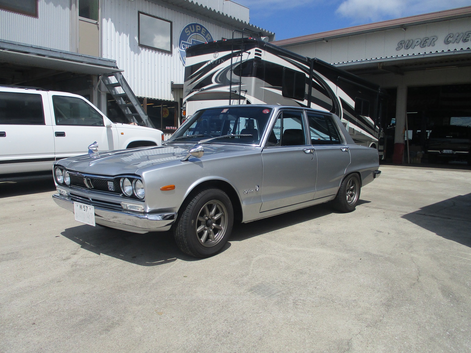 2021年8月30日 更新情報 ワッツは旧車のレストアもやるのです 約30カ月前に預かった ハコスカ 毎日コツコツと 錆と戦いレストア完成しました!! エンジン、キャブO/H,足回り、ブレーキ回り、 ボディ修理、鉄板張り替え、ペイントは鉄板から ストレートボディ、ドアの隙までこだわり出来上がりました グリルは新車時の物を磨き上げてます いい感じに仕上がってます クーラーもオリジナルでO/H済みでガンガンききます~ たまには乗用車ネタいいですね